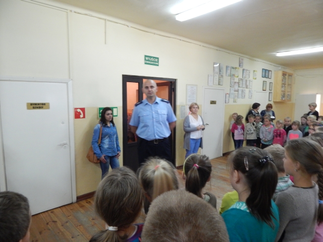 24 września 2014r. uczniowie naszej szkoły uczestniczyli w spotkaniu z policjantem. Podczas spotkania pan Paweł Lesiak przekazał wiele
