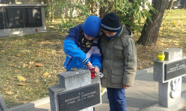W dniu 30.X.2014r uczniowie klas II-VI wybrali się na cmentarz w Rawie Mazowieckiej, celem uczczenia pamięci zmarłych. Zapalili znicze na grobach żołnierzy, którzy oddali życie za naszą Ojczyznę.