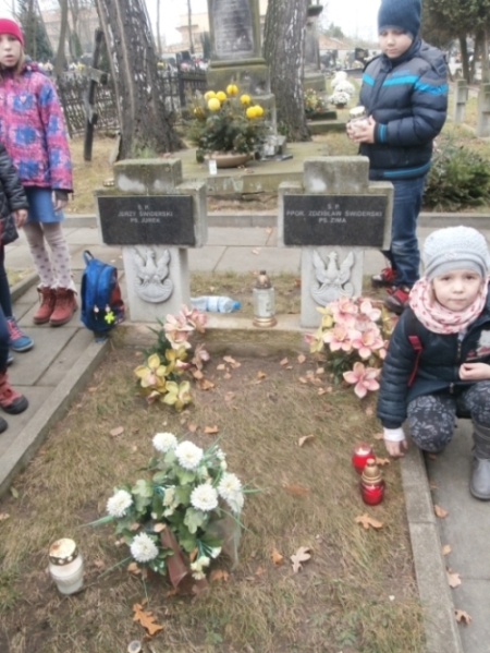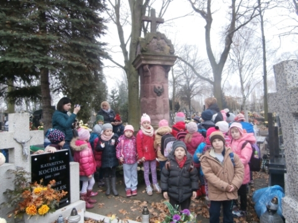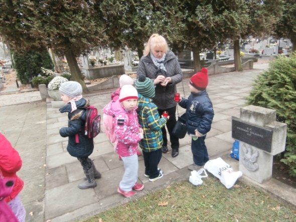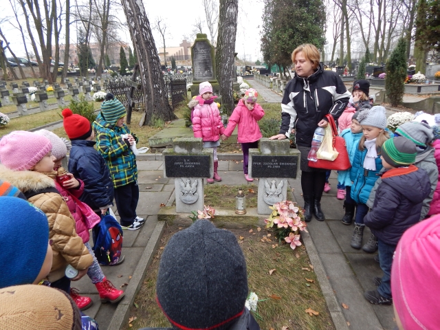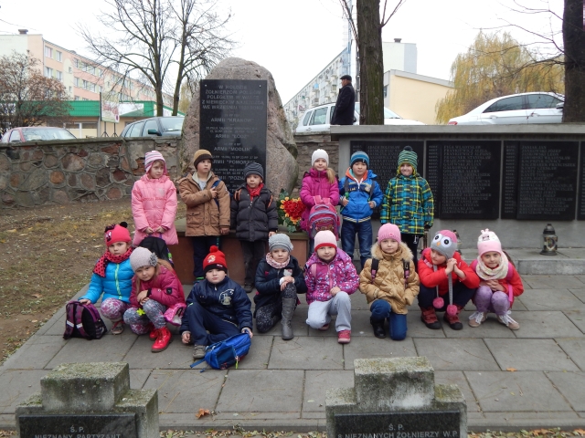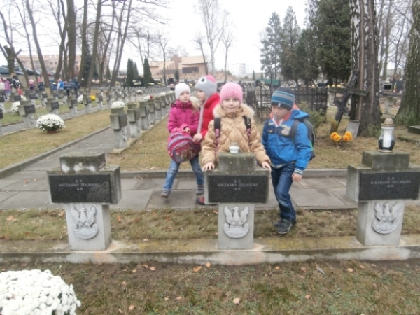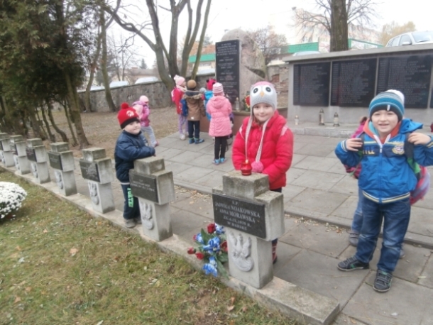 Dnia 13 listopada 2014r. dzieci z oddziałów przedszkolnych i kl I uczestniczyły w wycieczce do Rawy Mazowieckiej. Odwiedziły cmentarz żołnierzy poległych w czasie II wojny światowej. Zapaliły znicze. Zapoznały się z tragiczną historią braci Świderskich, których imieniem została nazwana jedna z ulic w Rawie Mazowieckiej. Złożyły również kwiaty pod Pomnikiem Powstańców Styczniowych. Była to wspaniała lekcja patriotyzmu.