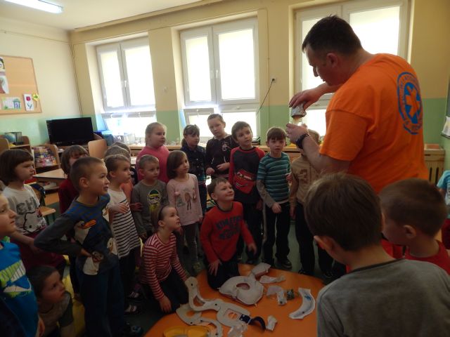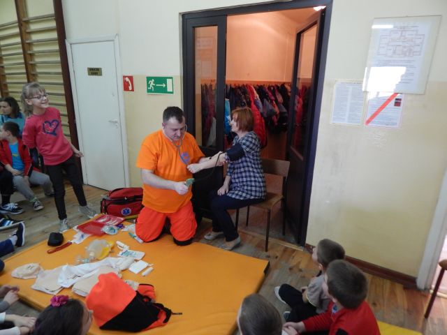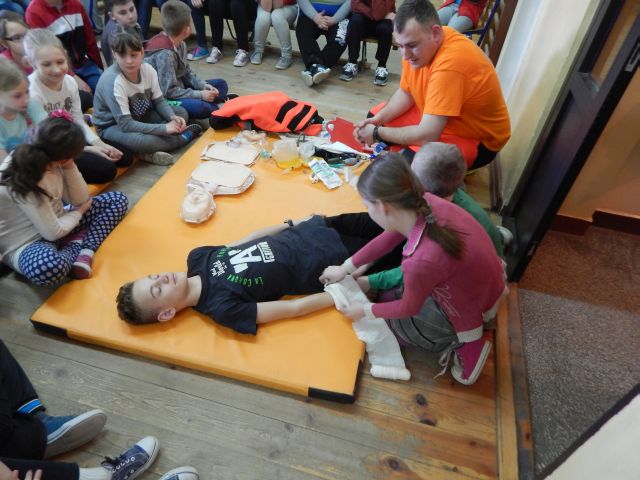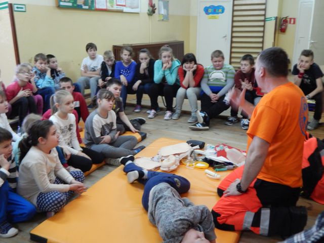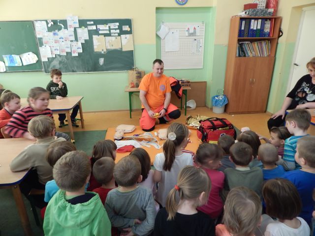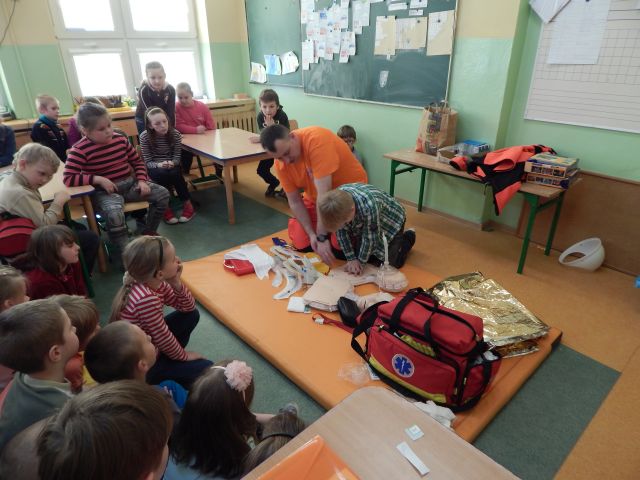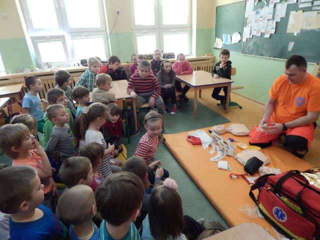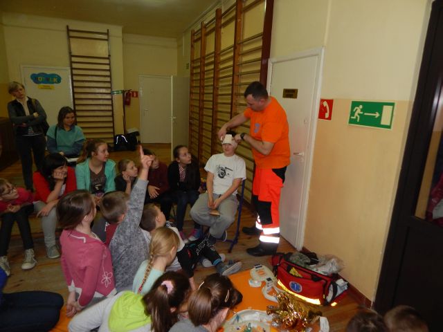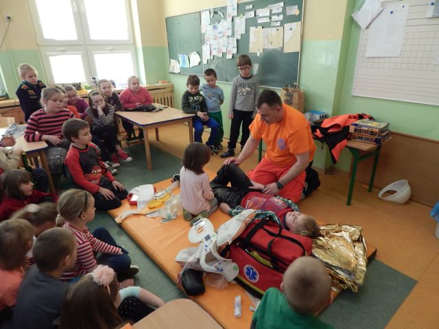 Dnia 17.03.2015r. naszym gościem był absolwent naszej szkoły Ratownik Medyczny pan Marcin Redlicki. Spotkanie było nie tylko miłe, ale przede wszystkim bardzo ważne. Celem zajęć było przygotowanie uczniów do wykonywania prostych czynności udzielania pierwszej pomocy oraz prawidłowego zachowania się w czasie wypadku, w sytuacjach zagrożenia życia lub zdrowia. Uwagę dzieci zwrócił też sprzęt medyczny znajdujący się w walizce, z którym miały okazję zaznajomić się i dowiedzieć się, co do czego służy. Mamy nadzieję, że spotkanie to pomogło zaszczepić ideę konieczności pomocy osobom potrzebującym.