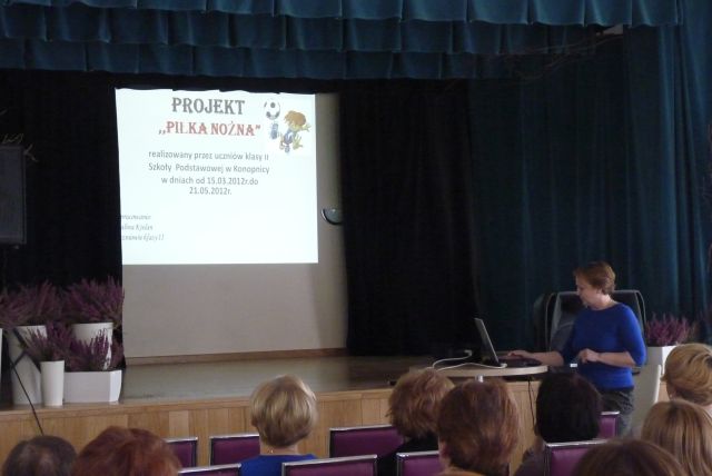 Dnia 26 marca 2015r. w Centrum Aktywności Kulturalnej w Boguszycach odbyła się III Międzypowiatowa Konferencja Metodyczna „Uczeń zdolny. Neurodydaktyka - czy wiedza o ludzkim mózgu zmieni szkołę”, zorganizowana przez Wojewódzki Ośrodek Doskonalenia Nauczycieli w Skierniewicach we współpracy z Jednostkami Samorządów Terytorialnych. Tego dnia nasza szkoła już po raz kolejny prezentowała swój dorobek. Uczestnicy konferencji mogli podziwiać stoiska wystawowe przygotowane w ramach przedsięwzięcia „Mapa talentów”. Stoisko wystawowe Szkoły Podstawowej i Przedszkola w Konopnicy przygotowały panie: Sylwia Kośla i Sylwia Tęczyńska. Prace plastyczne ukazywały kreatywność i bogactwo znajomości różnych technik plastycznych. Drugim punktem konferencji były prezentacje dorobku z poszczególnych placówek. Wystąpienia miały na celu pokazanie w jaki sposób można rozbudzać zainteresowania uczniów, jak pracować z uczniem zdolnym i jak inspirować uczniów do działania. Naszą szkołę prezentowały panie: Halina Kielan i Maria Jankowska. Przedstawiły projekty edukacyjne: „Piłka nożna” i „Chomik”.