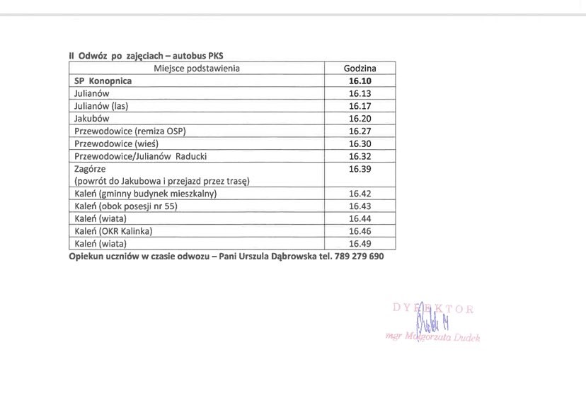 Harmonogram dowozu uczniów w roku szkolnym 2023/2024