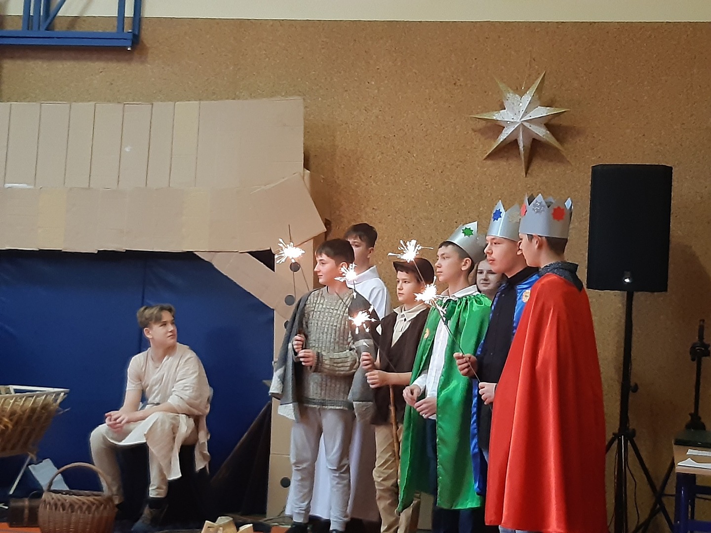 20.12.2023r. uczniowie przybliżyli nam cud Bożego Narodzenia. Przepiękna inscenizacja przypomniała nam o niezwykłych wydarzeniach, które odbyły się pewnej magicznej nocy ponad dwa tysiące lat lemu. Po Jasełkach odbyły się klasowe wigilie.