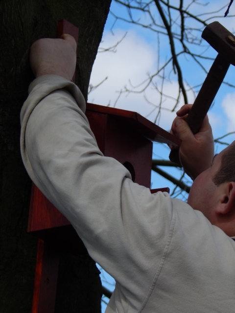 Młodzi przyjaciele zwierząt z "Klubu Naszej Ziemi" wykonali i zawiesili budki lęgowe dla ptaków na terenie szkolnym.